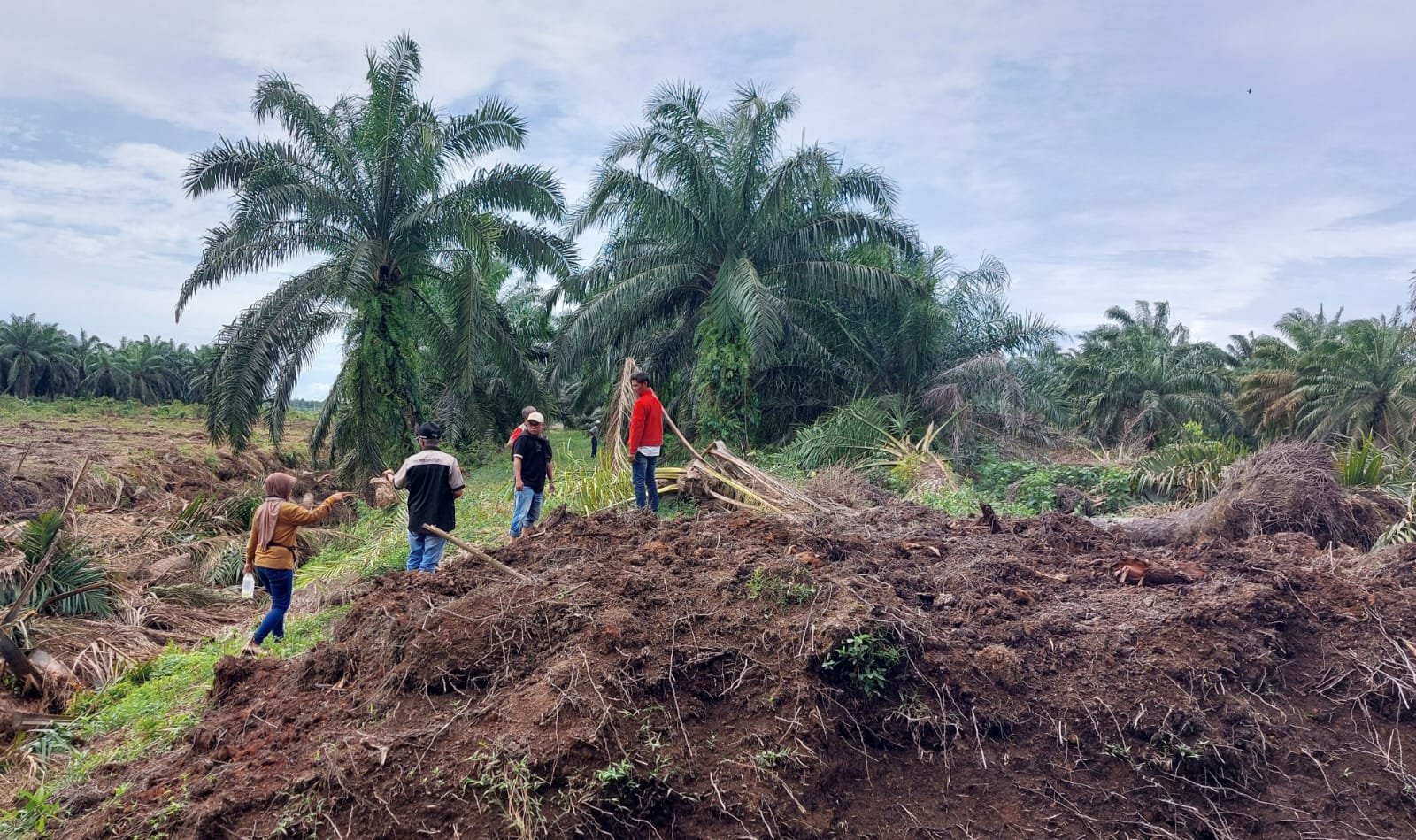 Semenjak 15 tahun lalu kebun sawit yang luasnya kurang dari satu hektar tersebut sudah dibabat 53 batang. Tidak hanya tanamannya dibabat, tetapi lahannya itu digali untuk membuat saluran untuk saluran air.