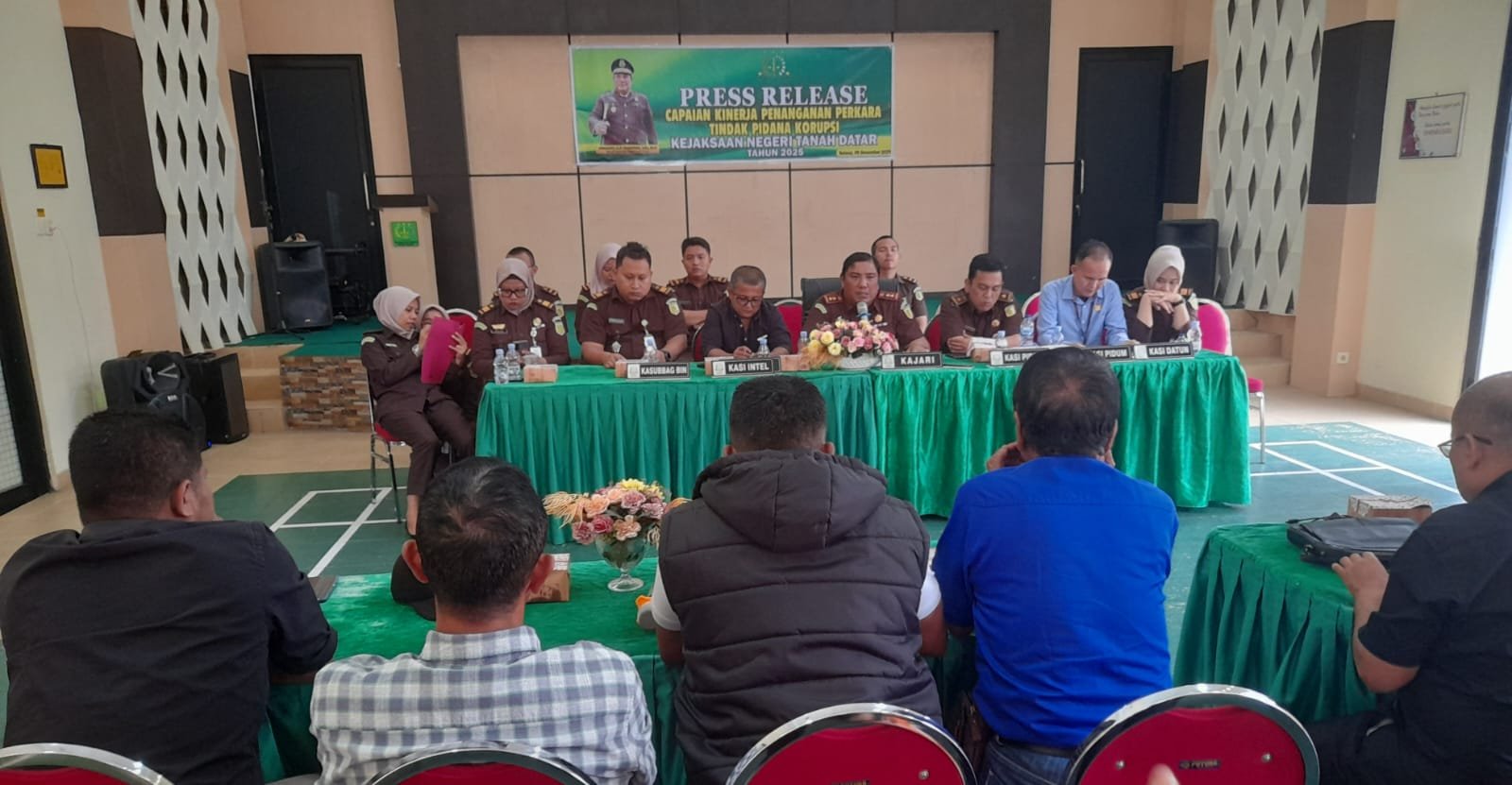 Kepala Kejaksaan Negeri Tanah Datar Anggiat A.P Pardede S.H, M.H, sampaikan hal itu pada Konferensi pers Capaian kinerja kasus pidana korupsi dalam memperingati Hari Anti Korupsi Sedunia (Hakordia) tahun 2025, Selasa (9/12/2025)  di Aula Kantor Kejari Tanah Datar, di Pagaruyung.