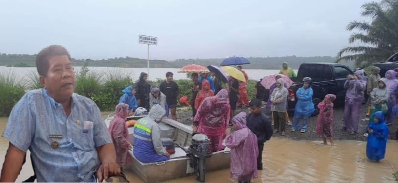 Sungai Anggang meluap, menyebar keperkebunan, baik perkebunan sawit PT. AMP, maupun kebun sawit masyarakat. Tidak hanya genangan air yang meluap hingga ketinggian 3-4 meter dari permukaan tanah, tapi air sungai juga membawa lumpur, yang kini mengendap memenuhi kebun sawit.