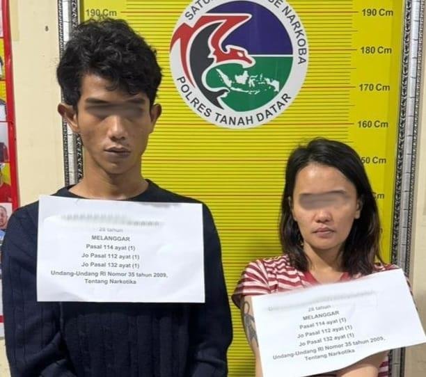 BATUSANGKAR, marapipost.com-Terduga pelaku tindak pidana narkotika sabu berinisial GAP (28 tahun ),jenis kelamin Perempuan dan RF (28 tahun ) jenis Laki-laki, Kamis (1/1/2026) sore berhasil diamankan Satres narkoba Polres Tanah Datar.