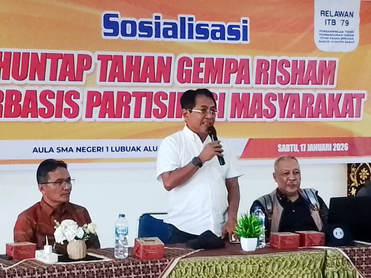 Komitmen tersebut disampaikan langsung Bupati Padang Pariaman, John Kenedy Azis, pada acara membuka Sosialisasi Hunian Tetap (Huntap) Tahan Gempa RISHAM Berbasis Partisipasi Masyarakat Sabtu (17/1/2026) di Aula SMAN 1 Lubuak Aluang.