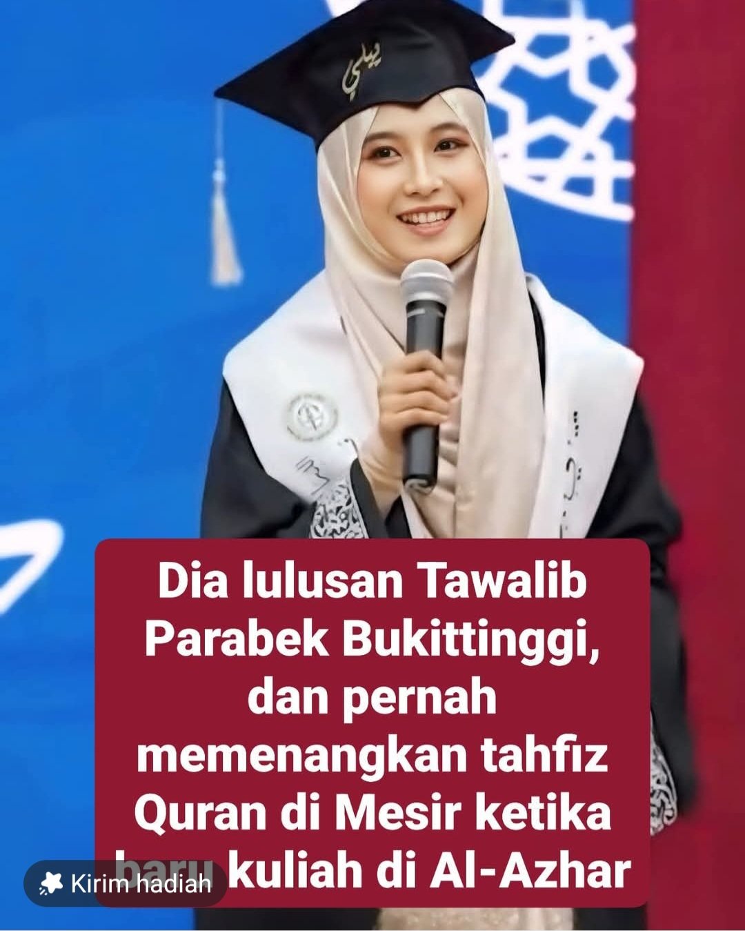 Selain karena didapuk membacakan kalimat perwakilan wisudawati, dia juga pernah Juara Pertama Tahfiz Qur’an di Mesir tahun 2022.