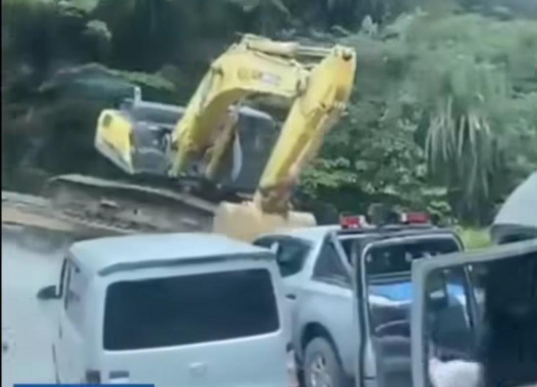 Menyaksikan alat berat itu meluncur dengan kecepatan tinggi, pengendara dibelakangnya secepatnya menghindar, beruntung tidak ada korban jiwa dalam insiden ini.