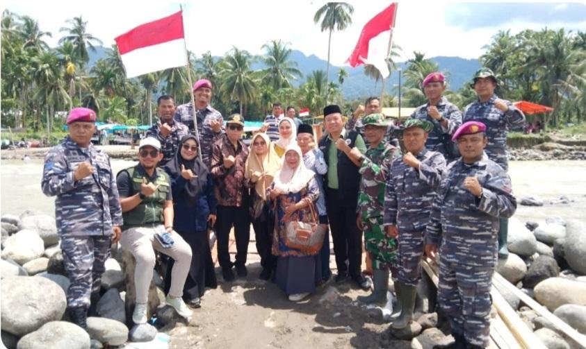 Selain penyerahan bantuan, rombongan juga meninjau jembatan darurat yang dibangun melalui kolaborasi berbagai pihak, termasuk masyarakat, relawan Aspila, dan unsur Kodaeral 2 Padang. Jembatan tersebut kini menjadi akses vital bagi mobilitas warga yang sebelumnya terputus akibat bencana.