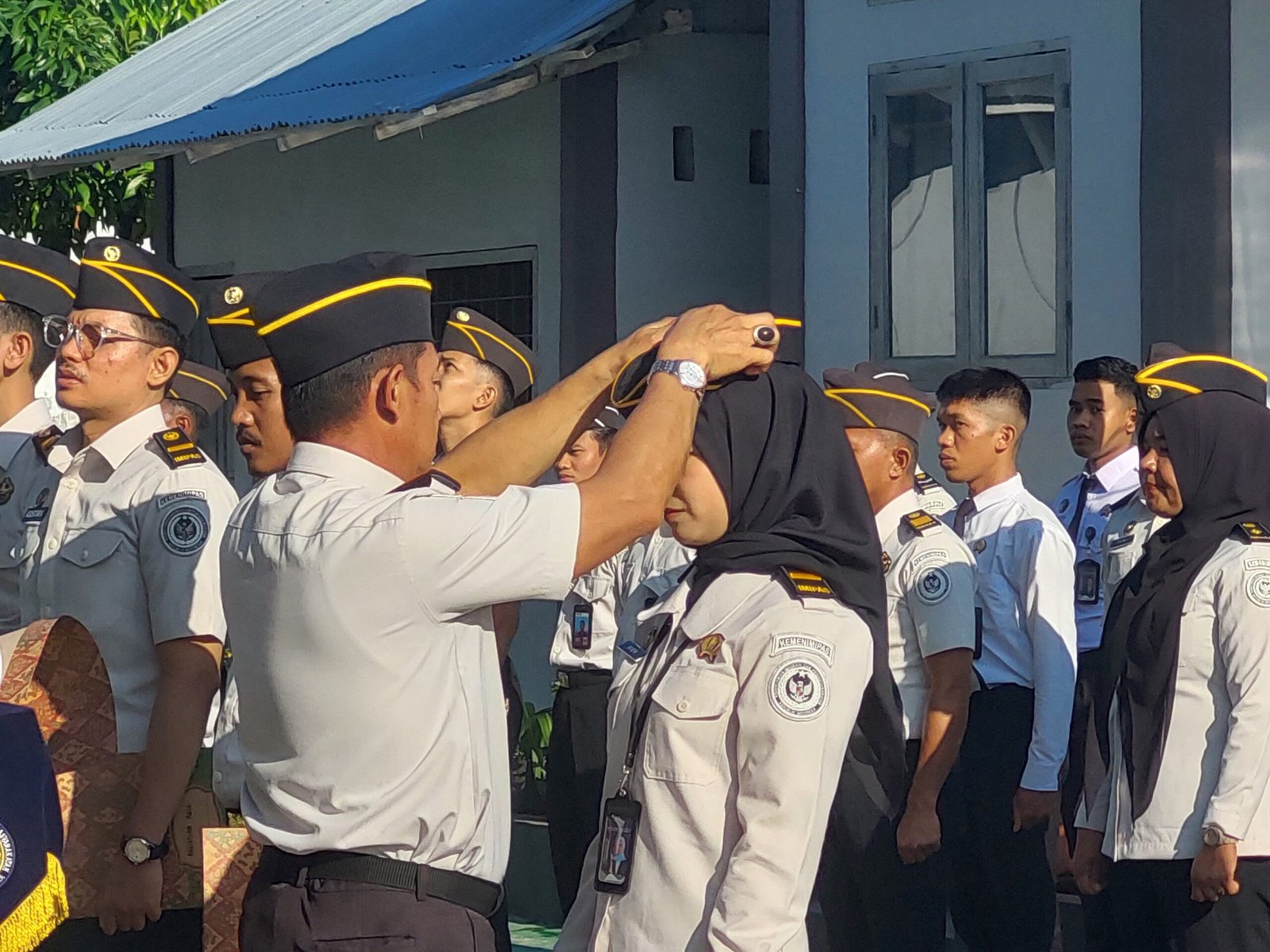 Upacara pemasangan tanda pangkat baru dipimpin langsung Kalapas diikuti bersama seluruh jajaran. Sebelum pemasangan tanda pangkat, penggantian peci, dilaksanakan pembacaan Surat Keputusan (SK).
