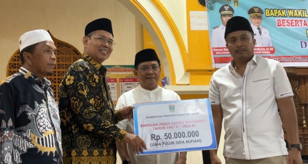 Pada kesempatan tersebut, Pemerintah Provinsi Sumatera Barat juga menyerahkan sejumlah bantuan di Masjid Raya Sunur. Bantuan tersebut meliputi hibah Safari Ramadan Tahun 1447 H/2026 M sebesar Rp50.000.000.