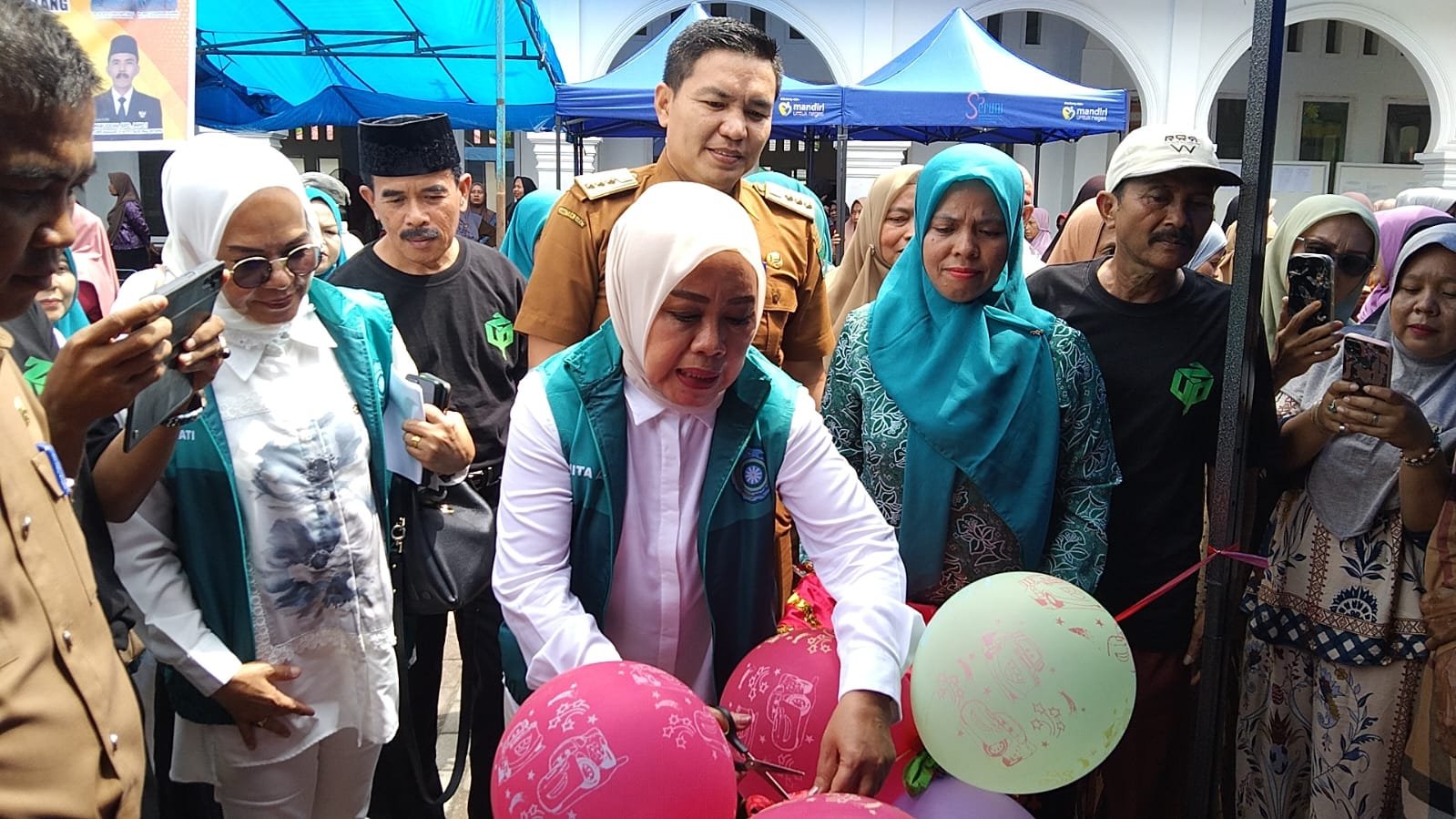 Sebagai tanda diresmikan pasar murah ini, Ketua TP PKK Padang Pariaman Ny. Hj. Nita Christanti Aziz melakukan pengguntingan pita dimulai pasar murah di Nagari III  Koto Aurmalintang secara resmi.
