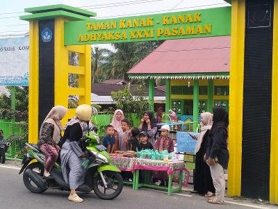 PASAMAN, marapipost.com-Semangat berbagi di bulan suci Ramadan ditanamkan sejak dini kepada para siswa TK Adhyaksa XXXI Pasaman, Sumatera Barat, dibawah binaan Kejaksaan Negeri Pasaman, melalui kegiatan pembagian takjil kepada masyarakat.
