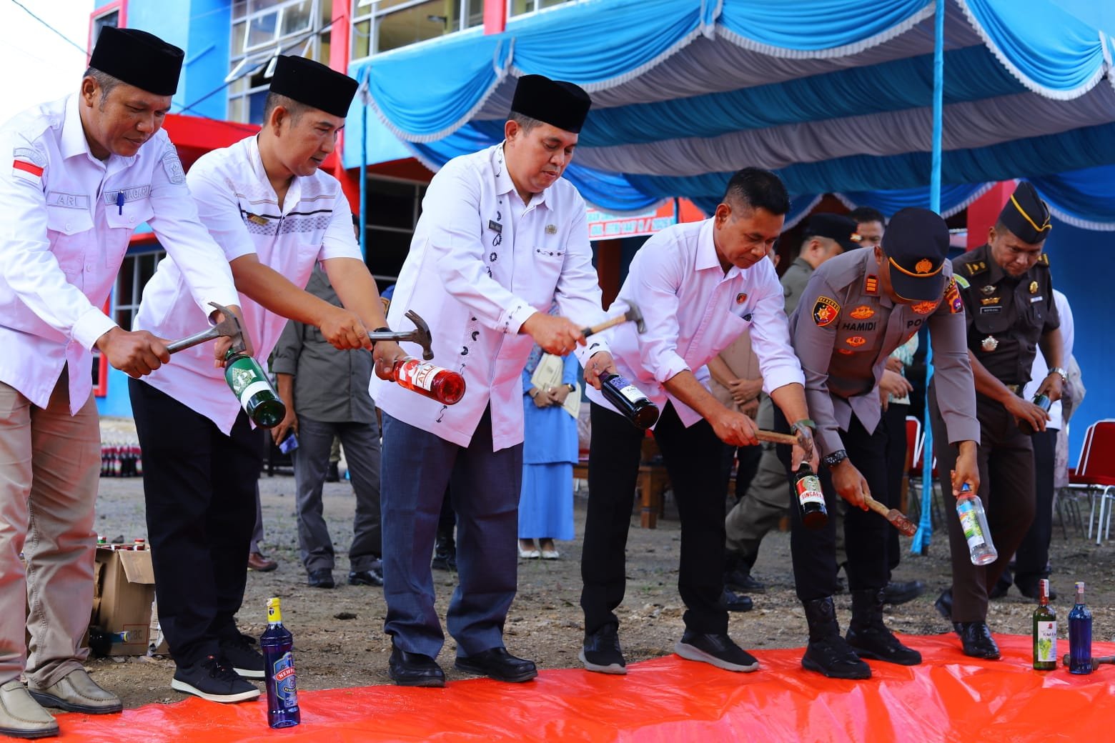 Barang bukti yang dimusnahkan itu sebanyak 721 botol minuman keras, dari berbagai jenis, dan minuman tradisional jenis tuak. Pemusnahan dipimpin Staf Ahli Bupati Agam Bidang Politik dan Pemerintahan, Dandi Pribadi, bersama unsur Forkopimda; Kejaksaan Negeri Agam, Pengadilan Negeri Agam, unsur terkait lainnya.